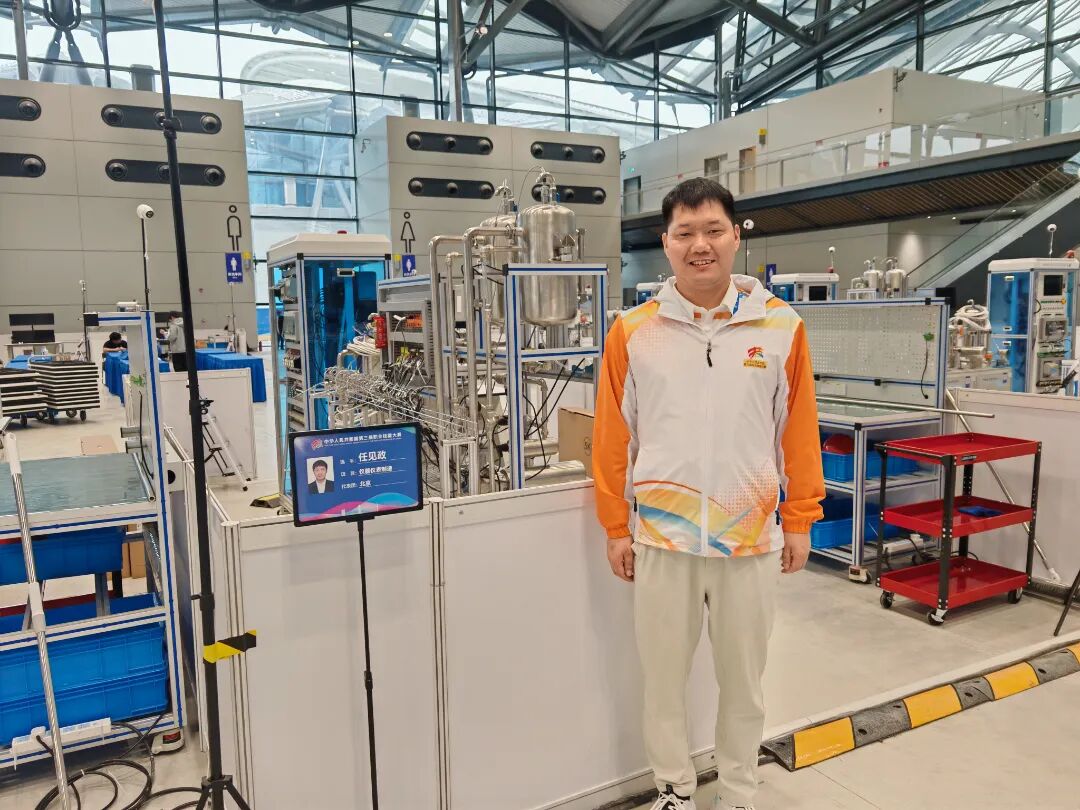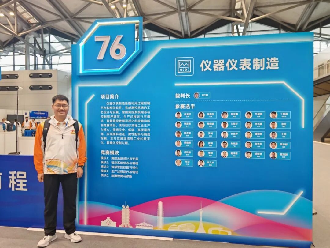 任見政參與的儀器儀表制造項目以流程工業(yè)生產(chǎn)為核心,圍繞安全、低碳、高質(zhì)量目標,在3天的賽期內(nèi)完成測控系統(tǒng)設(shè)計與安裝、智控系統(tǒng)組態(tài)與編程、智慧管控數(shù)據(jù)可視化、生產(chǎn)過程運行與調(diào)試、故障檢測與診斷等五個關(guān)鍵模塊,全方位展現(xiàn)流程工業(yè)的數(shù)字化、智能化控制過程。